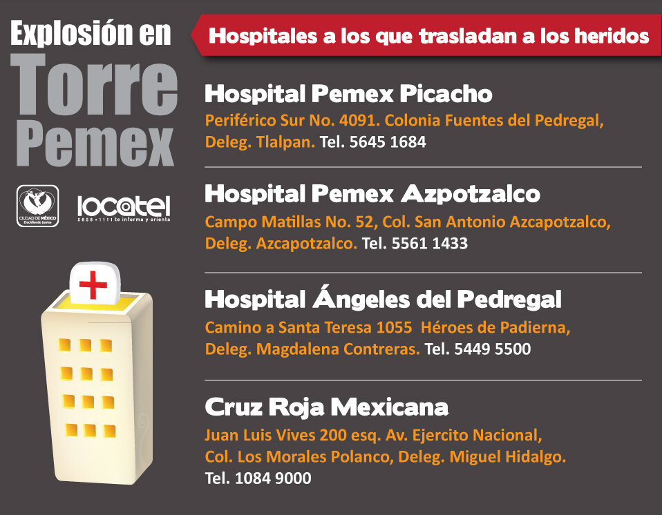 Direcciones de hospitales a los que trasladan a heridos #TorreDePEMEX.